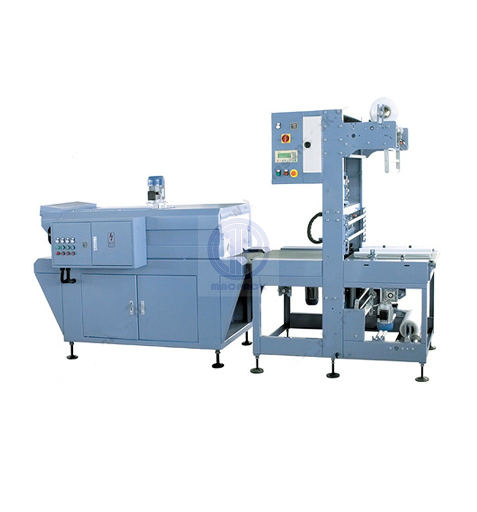 Sleeve Wrapping Machines are distinguishable from other types of shrink wrapping equipment in that the two ends of the package have an opening (often called “bulls eyes”) such as commonly seen for water bottle packaging where the openings can act a handles.